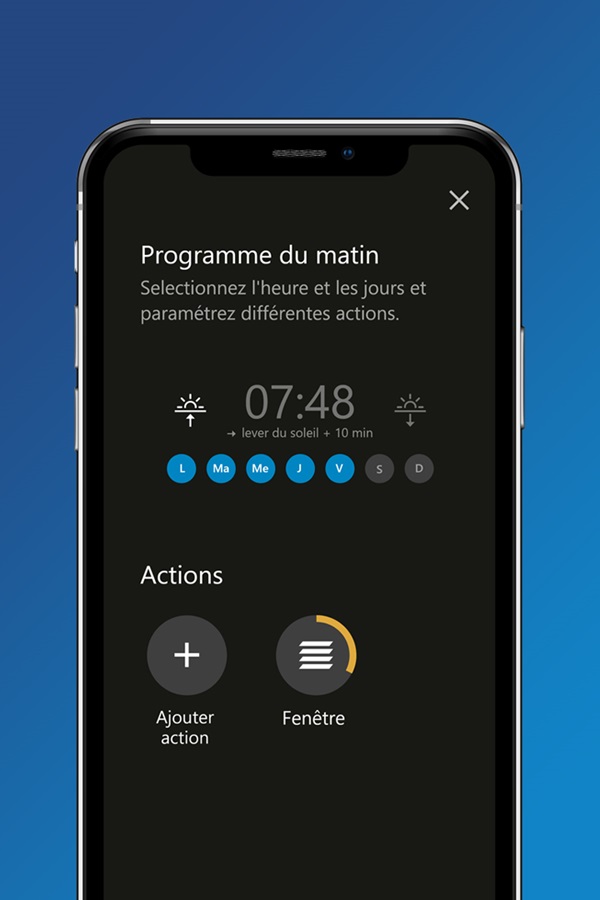 It's easy to define actions that repeat automatically (opening shutters in the morning, turning off lights in the evening...).